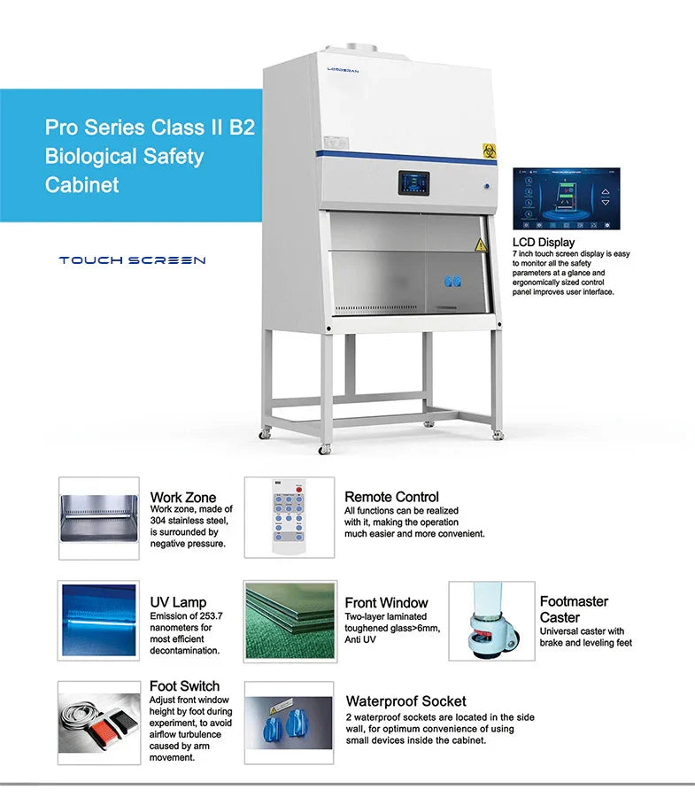 Dual exhaust: Type B2 cabinets have a dual exhaust system, allowing for both inward and outward airflow to be independently controlled.